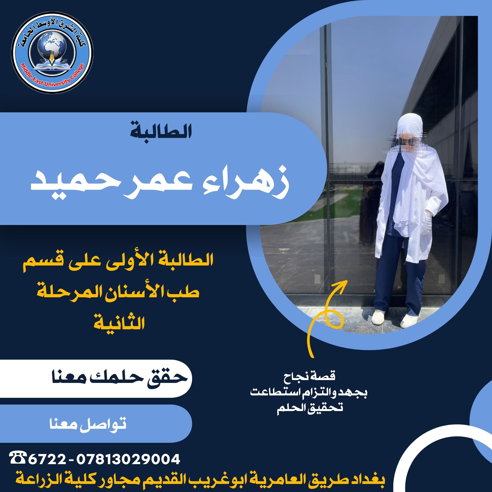 في كلية الشرق الأوسط الجامعة في بغداد، تمتد التجربة الجامعية لتكون أكثر من مجرد حضور المحاضرات والدروس، فهي عالم من الفرص التي تسهم في بناء المهارات الأكاديمية وصقل الجوانب الاجتماعية والشخصية للطلاب. توفر الجامعة مجموعة واسعة من التخصصات التي تفتح آفاق المستقبل، مدعومة بمرافق تعليمية حديثة تم تصميمها بعناية لتتماشى مع أرقى المعايير العالمية.