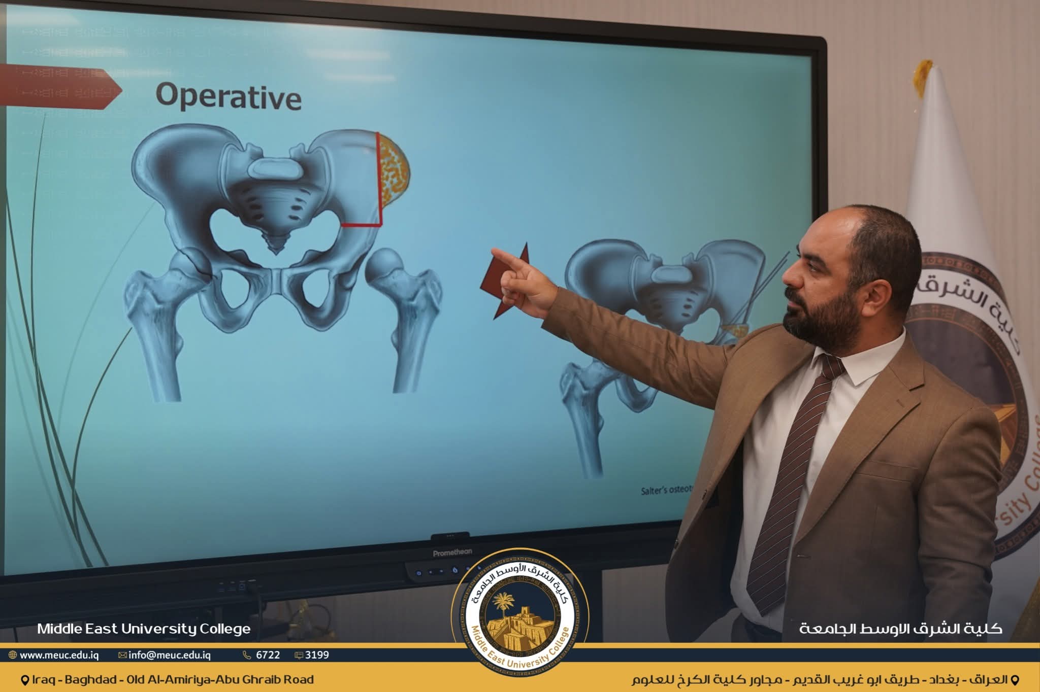 نظّمت كلية الشرق الأوسط الجامعة اليوم محاضرة توعوية قدّمها الدكتور (حارث هيثم عباس) ، اختصاصي جراحة العظام والكسور والمفاصل جامعة ابن سينا ، حول خلع الورك الولادي عند الأطفال (DDH).