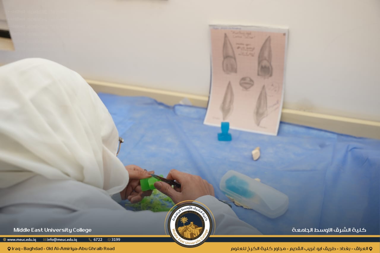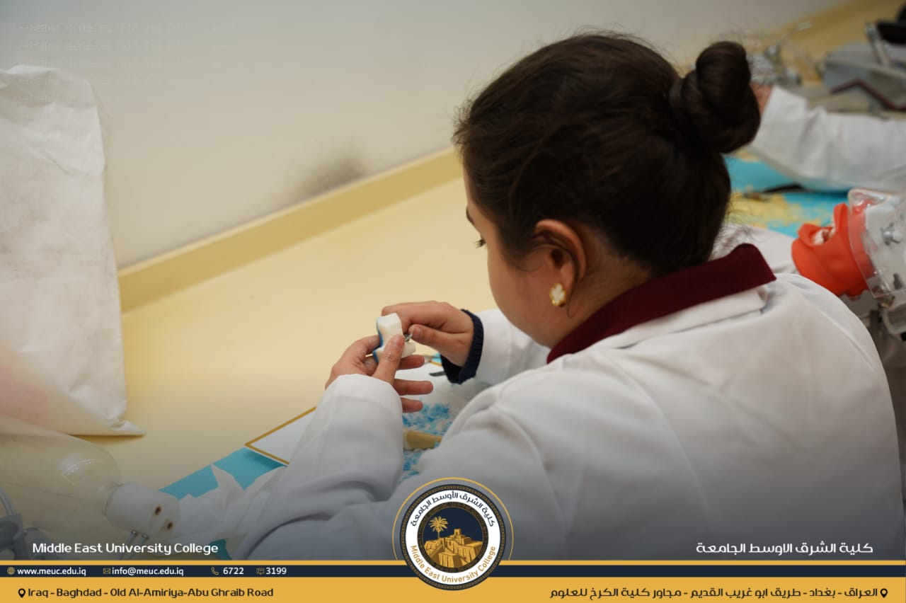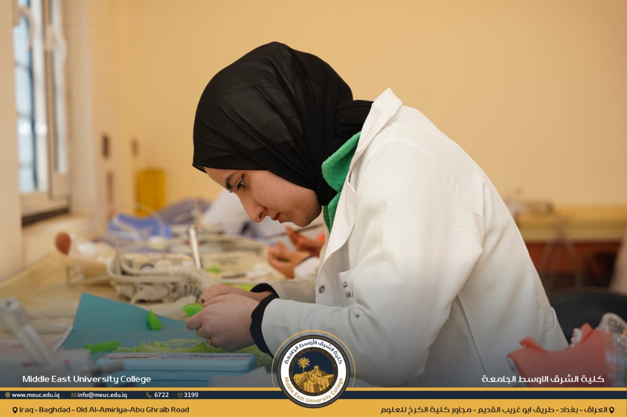 ضمن حرص كلية الشرق الأوسط الجامعة على الارتقاء بالمستوى العلمي والعملي لطلبتها، يواصل طلبة المرحلة الأولى في قسم طب الأسنان تدريباتهم العملية في مختبر الفانتوم، ضمن مادة النحت وتصميم الأسنان، بإشراف نخبة من التدريسيين المختصين.