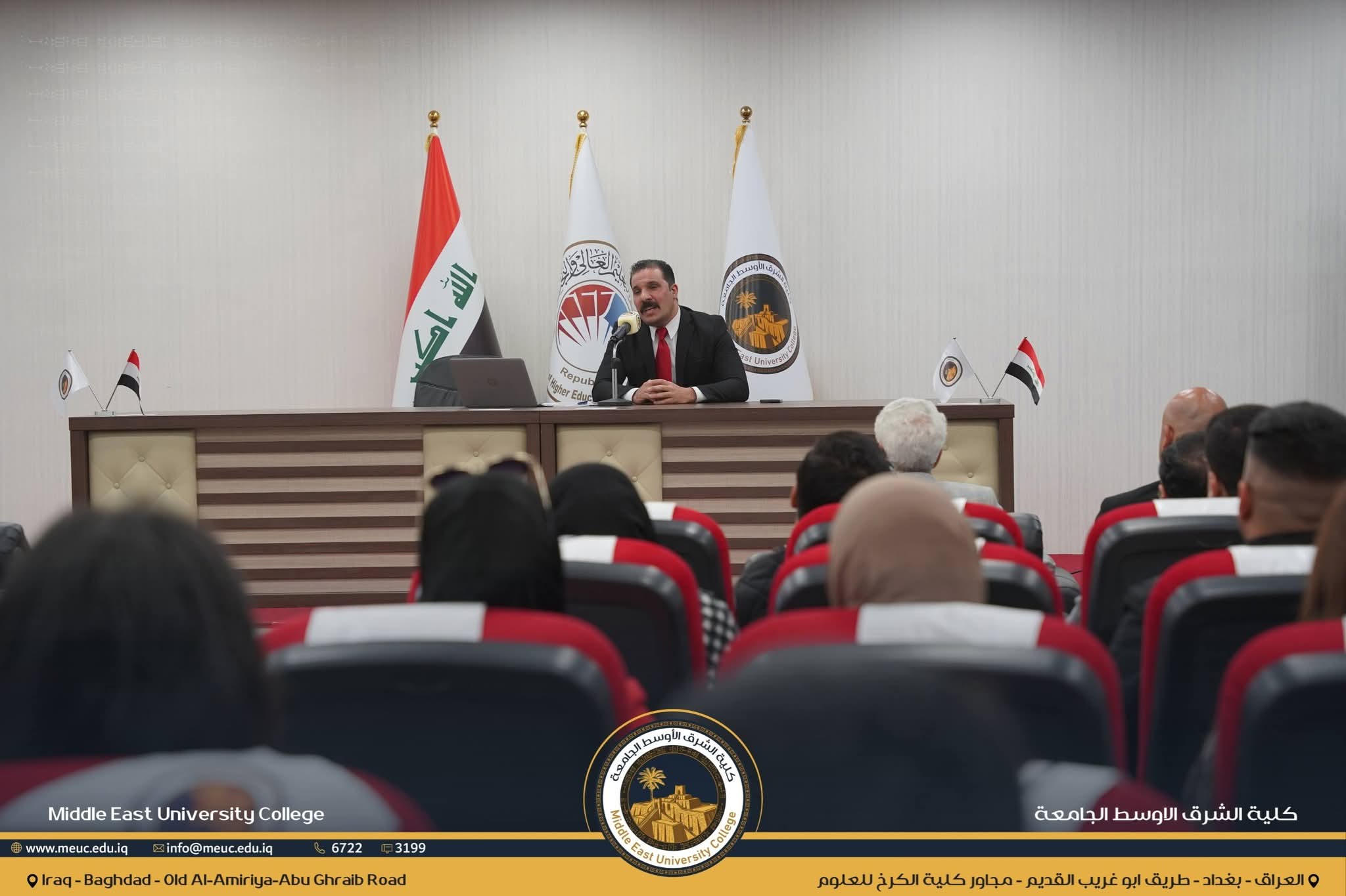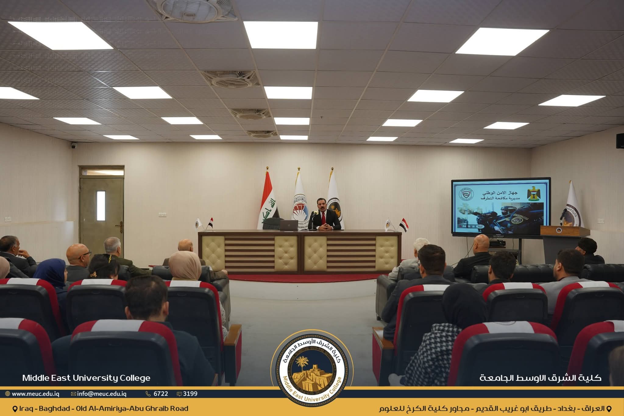 نظّم قسم المتابعة في كلية الشرق الأوسط الجامعة، بالتعاون مع شعبة الإعلام والعلاقات العامة، محاضرة توعوية لطلبة الكلية حول مخاطر التطرف، قدّمها أساتذة مختصون من جهاز الأمن الوطني العراقي.