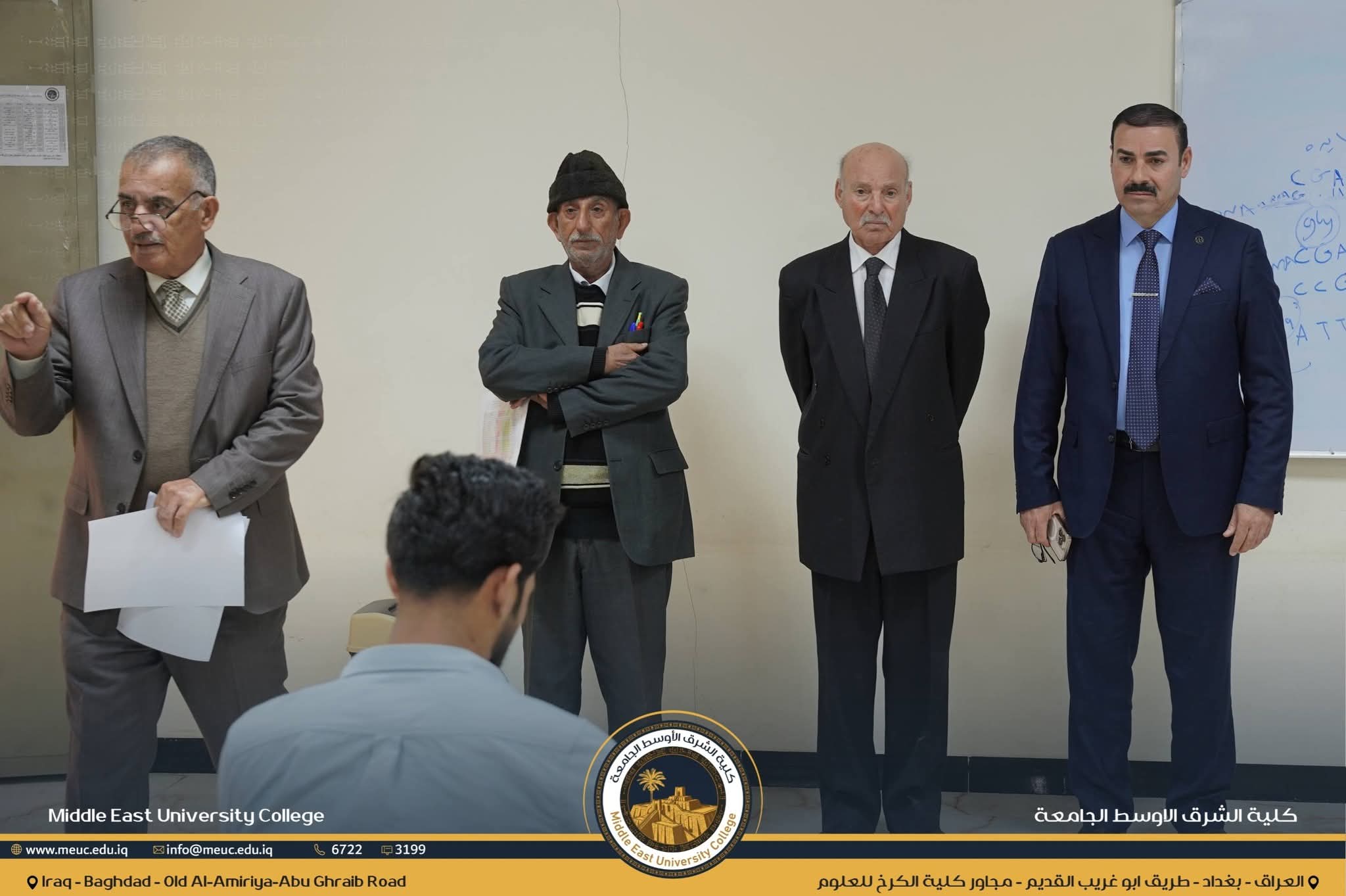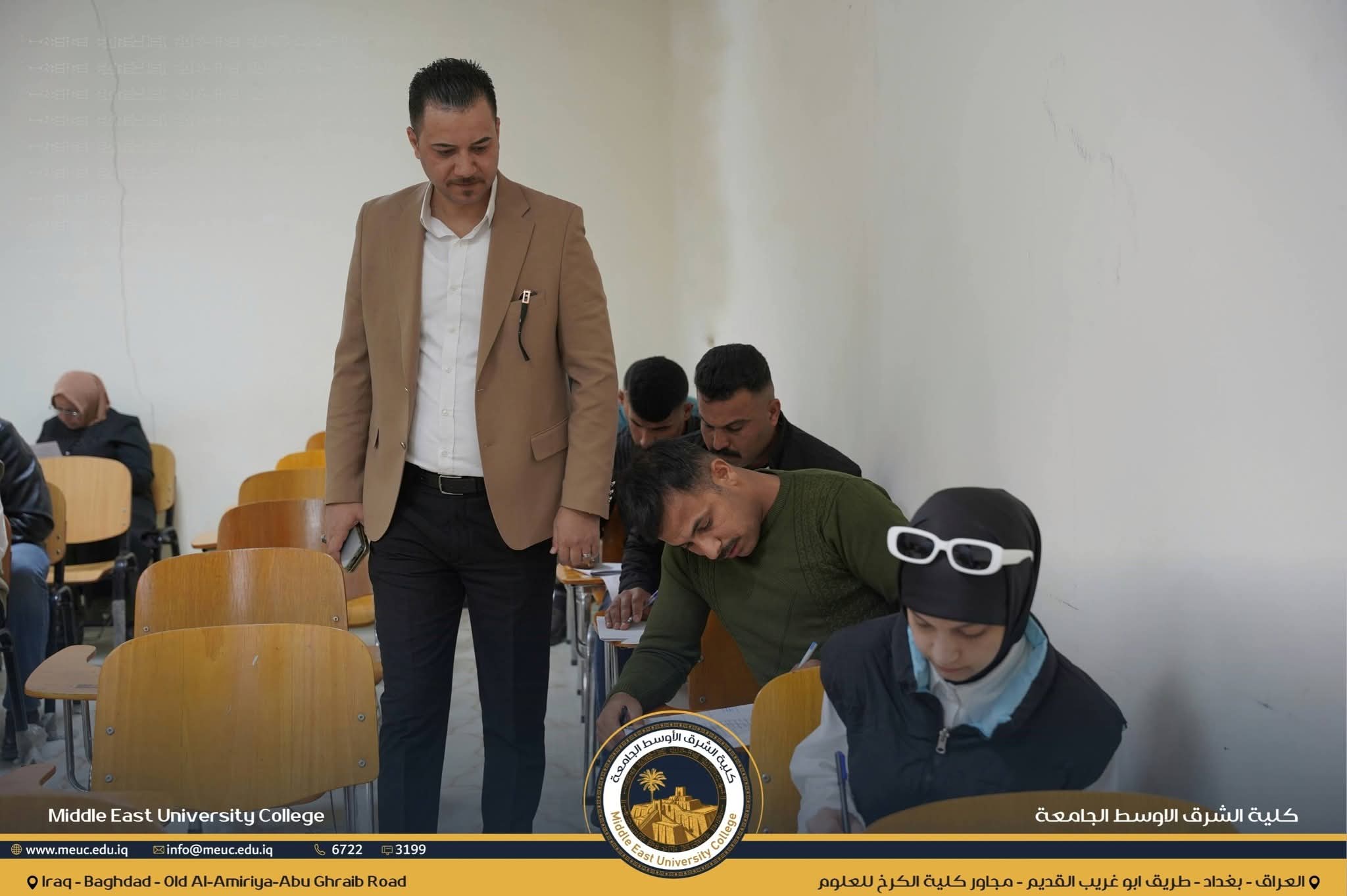 وقد جرت الامتحانات تحت إشراف عميد كلية الشرق الأوسط الجامعة الأستاذ الدكتور مثنى علوان الجشعمي، وبمتابعة اللجان الامتحانية ورؤساء الأقسام، تأكيداً على توفير بيئة مناسبة للطلبة ودعم مسيرتهم العلمية.