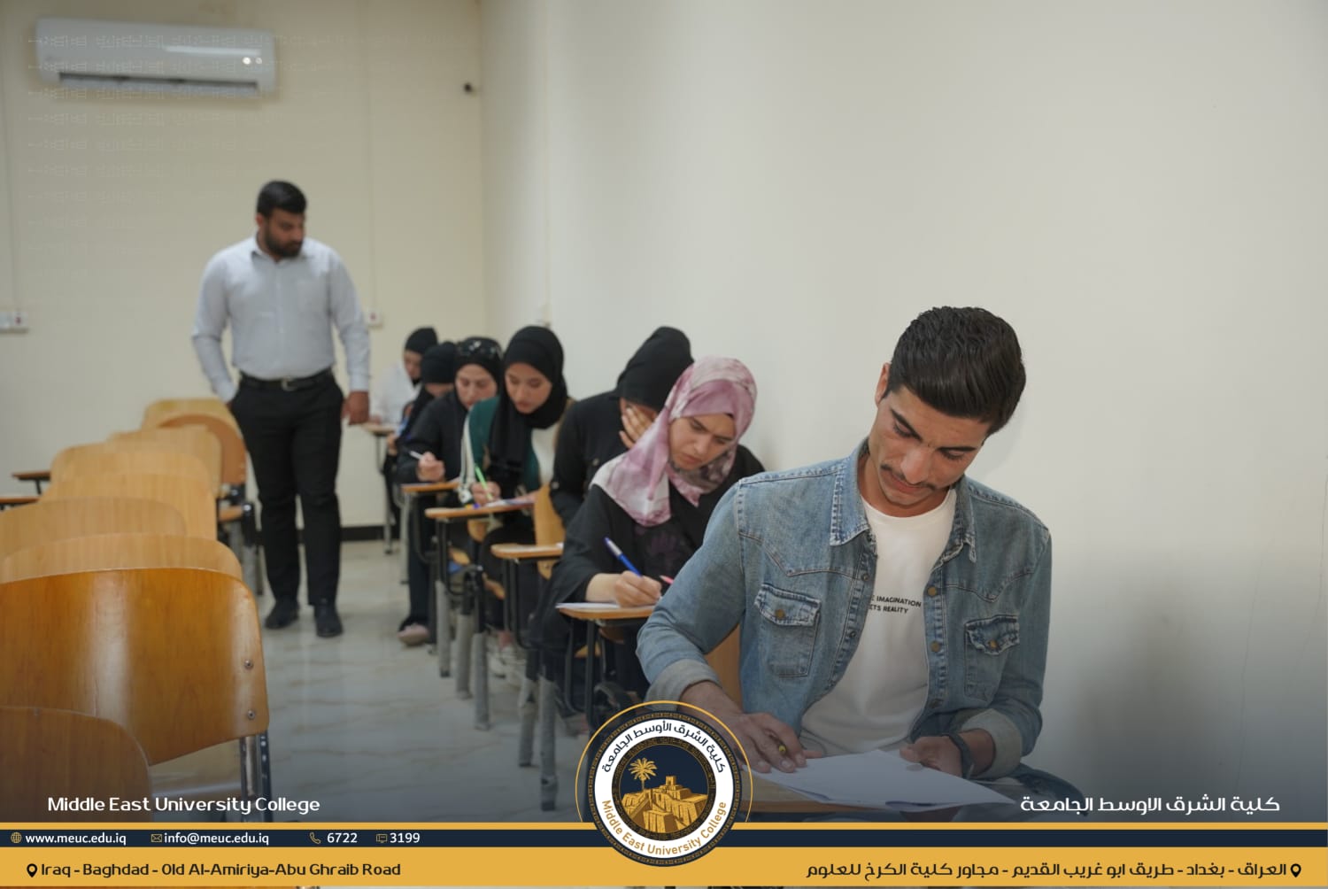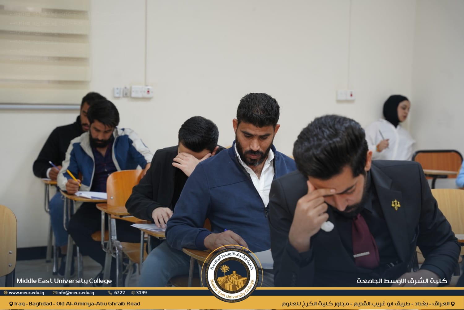 نظّمت كلية الشرق الأوسط الجامعة امتحانًا تجريبيًا لطلبة المرحلة الرابعة والثالثة في قسم القانون، بهدف تدريبهم وتهيئتهم لخوض الامتحان التقويمي الوزاري بثقة وكفاءة. وجاء هذا الامتحان انسجامًا مع توصيات وزارة التعليم العالي والبحث العلمي، وبما يسهم في تعزيز مستوى الطلبة ورفع جاهزيتهم العلمية، من خلال محاكاة الأجواء الحقيقية للامتحانات الوزارية.