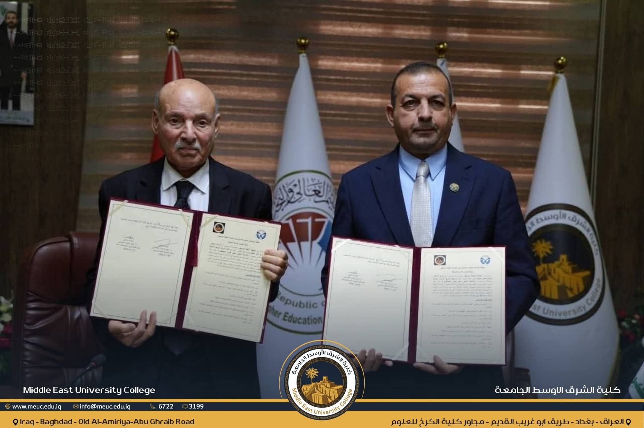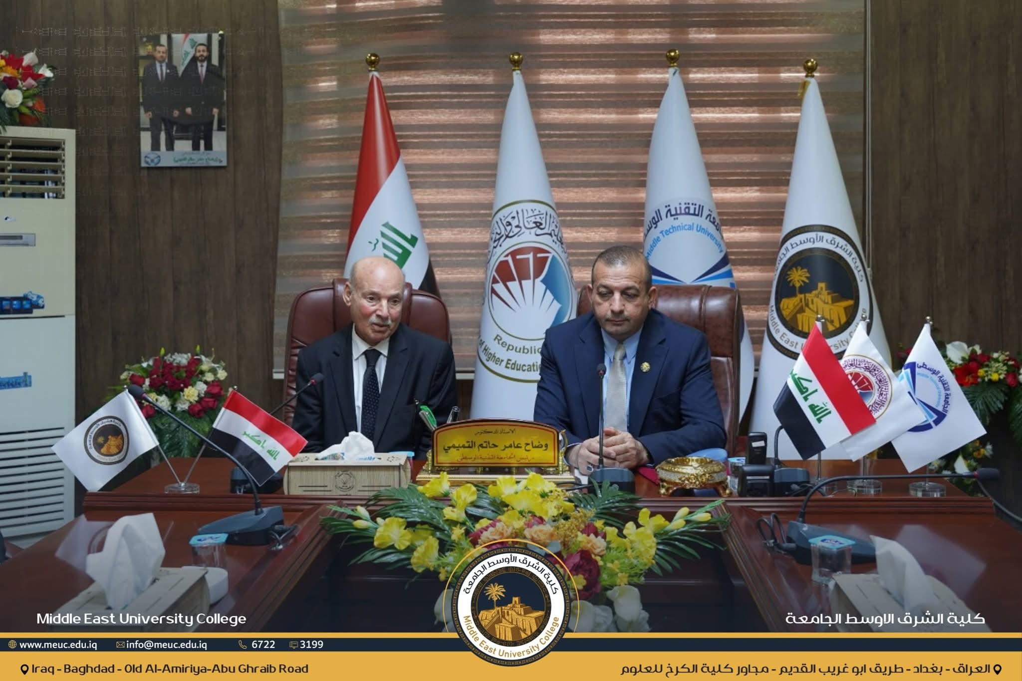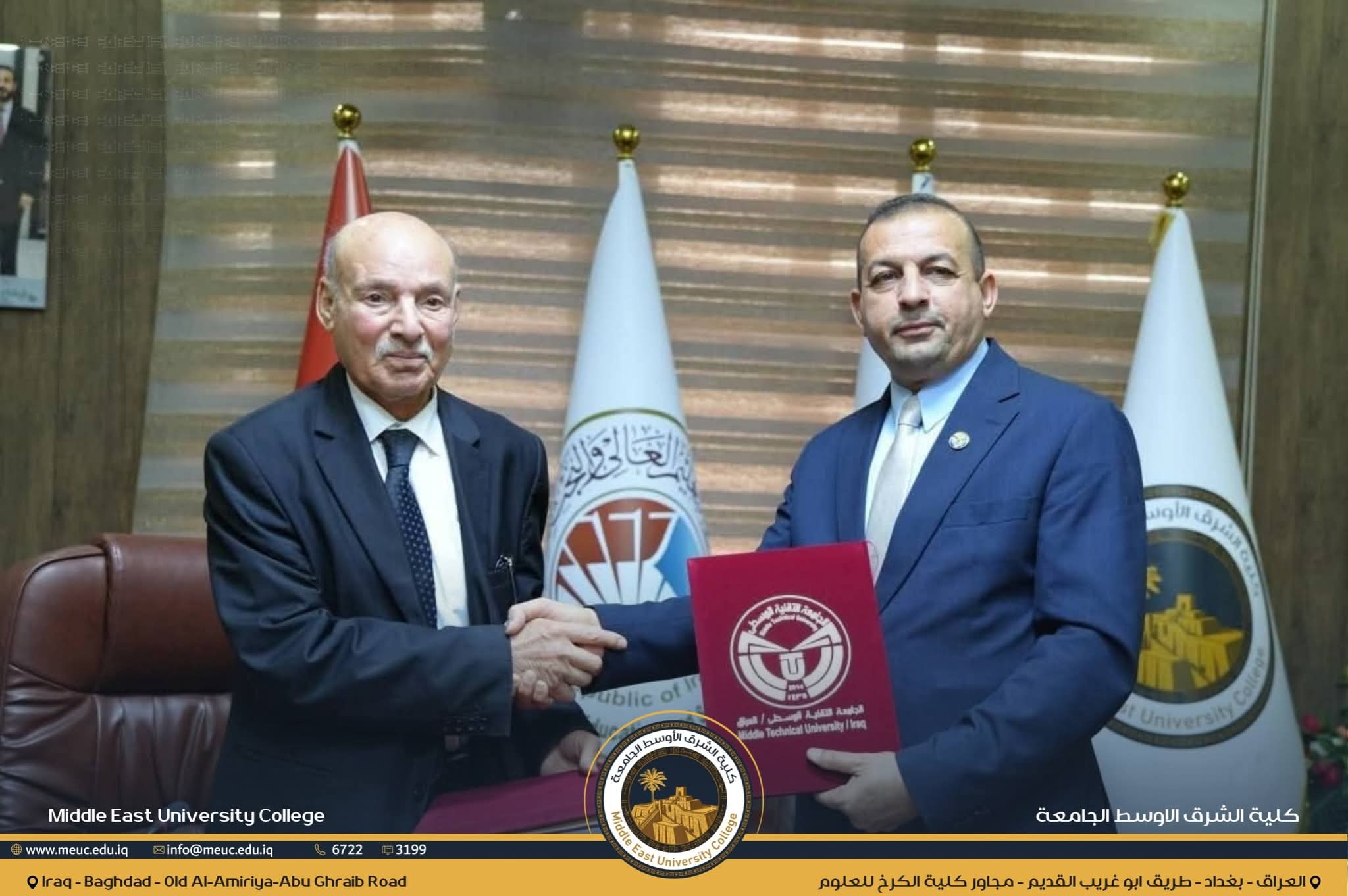 في إطار تعزيز التعاون الأكاديمي وتبادل الخبرات العلمية بين مؤسسات التعليم العالي في العراق، وقّعت كلية الشرق الأوسط الجامعة مذكرة توأمة وتعاون مشترك مع الجامعة التقنية الوسطى، بما يسهم في تطوير المسارات العلمية والتعليمية وبما ينسجم مع متطلبات سوق العمل.