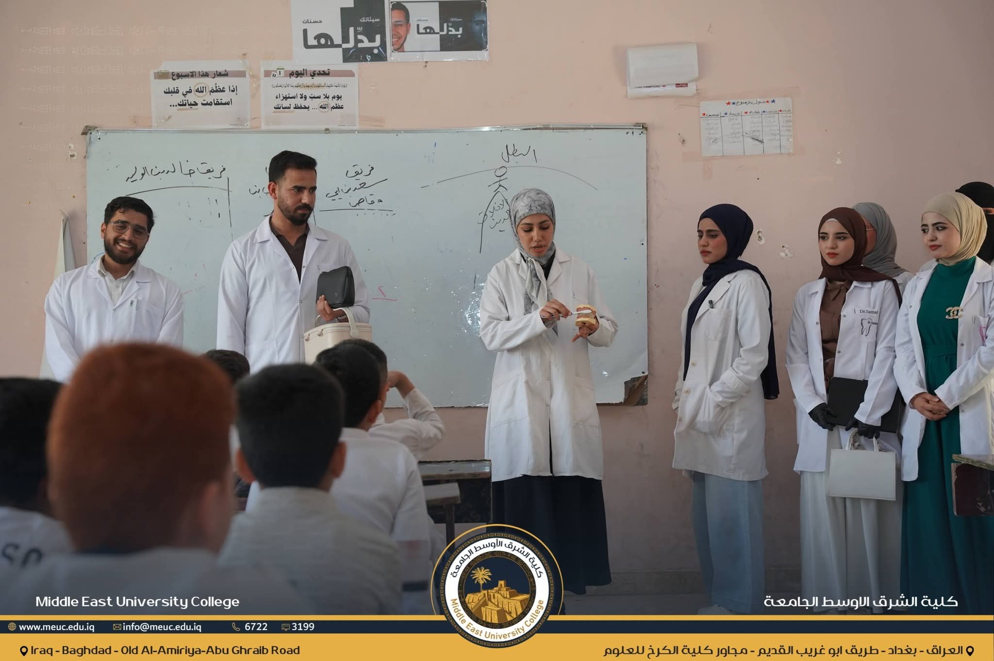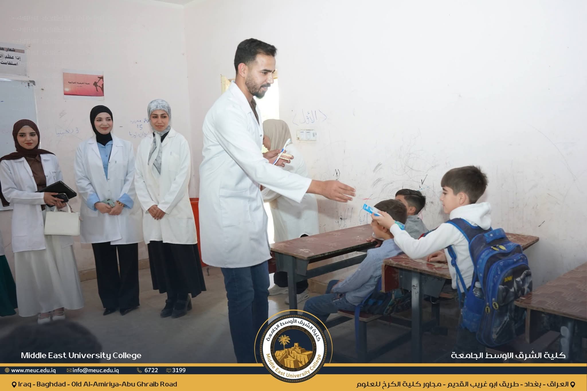 طلاب قسم طب الأسنان في كلية الشرق الأوسط الجامعة، وبالتعاون مع شعبة النشاطات الطلابية، ينظمون زيارة توعوية إلى مدرسة الزيتون الابتدائية، ضمن إطار المسؤولية المجتمعية.
