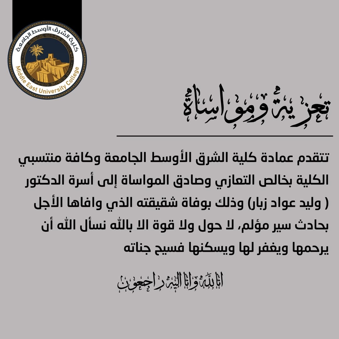 كلية الشرق الأوسط الجامعة تشارك الجامعة العراقية في مؤتمر علمي لتعزيز الأمن المجتمعي.