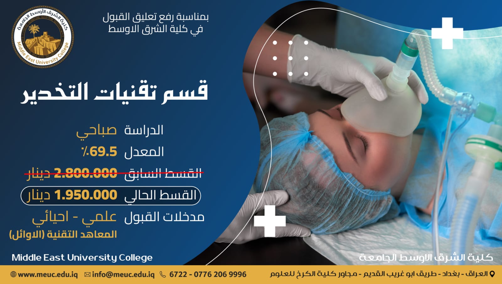 اعلان وظائف - قسم تقنيات التخدير في كلية الشرق الأوسط الجامعة