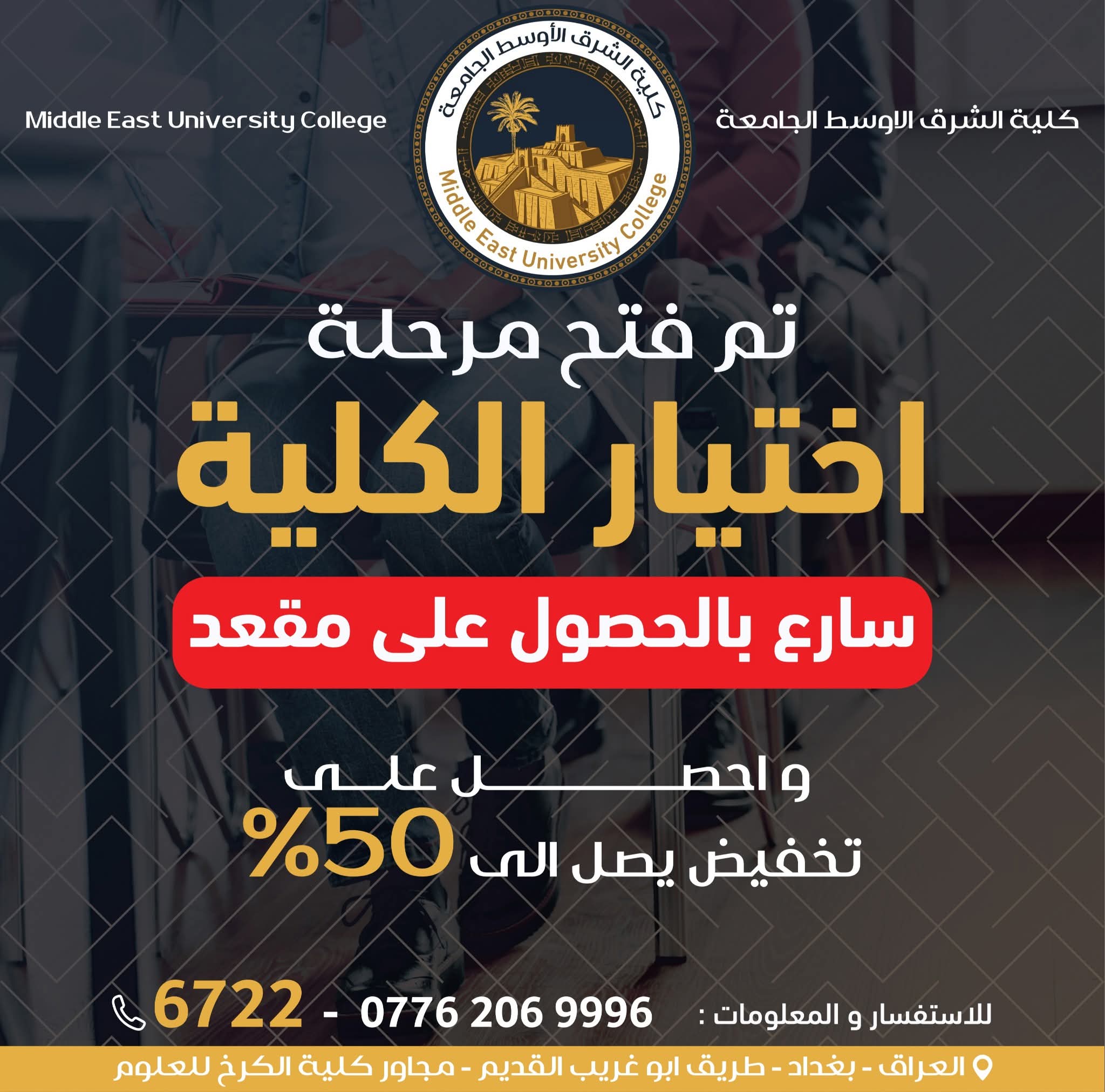 سارع واحصل على مقعد في أحد أقسام كلية الشرق الأوسط الجامعة