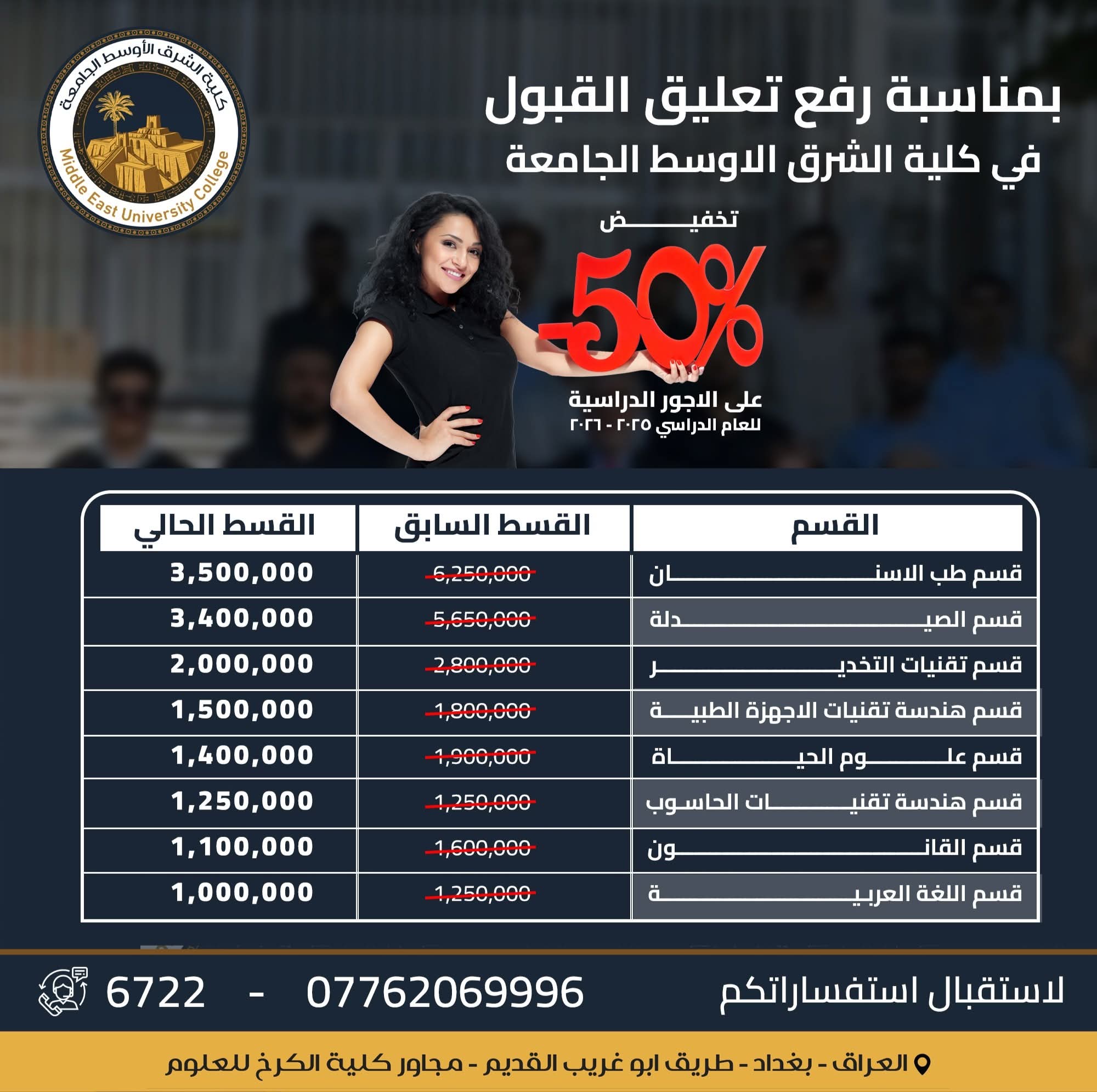 انطلاق الدوام الرسمي في كلية الشرق الأوسط الجامعة الساعة التاسعة صباحاً