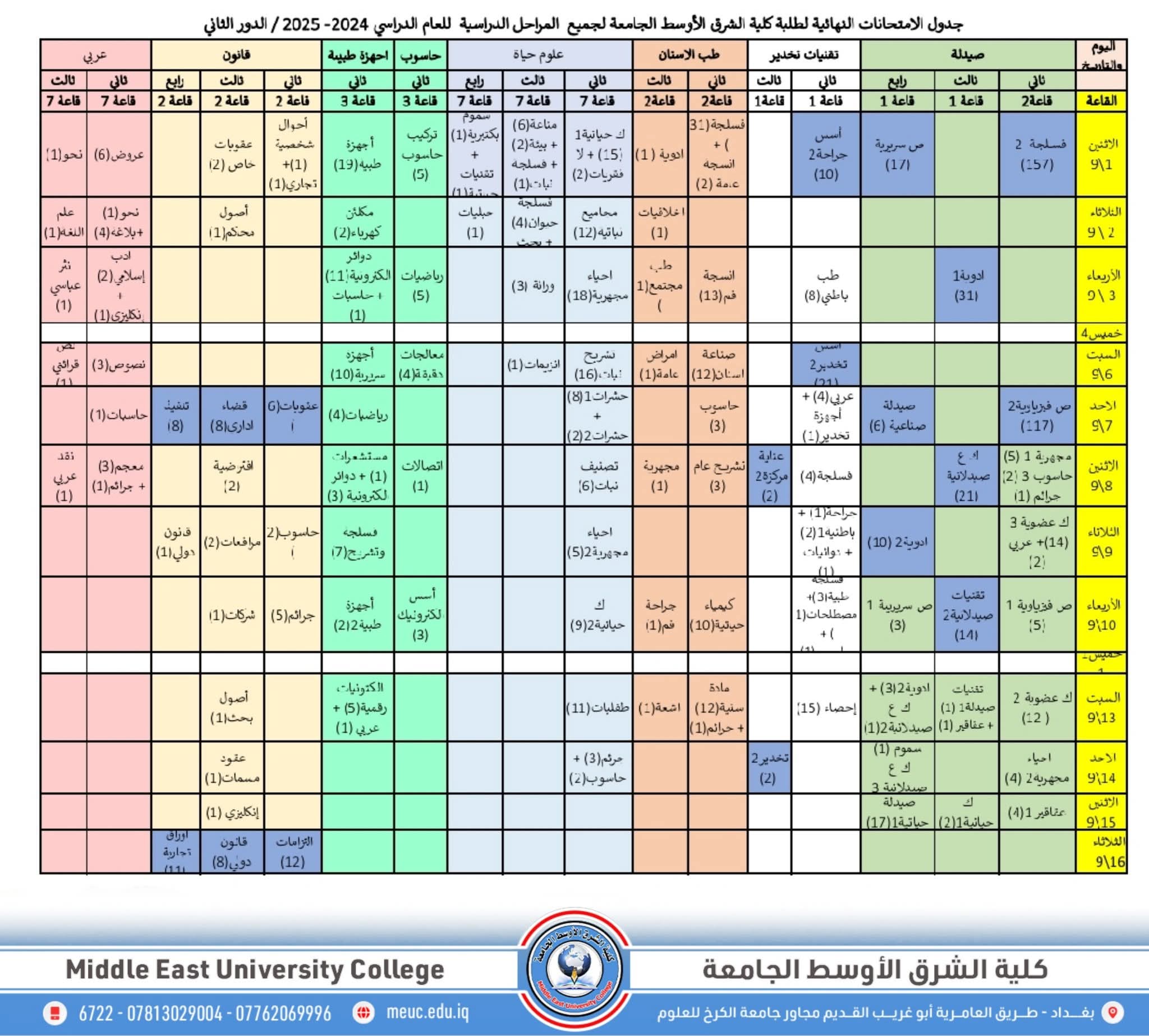 إعلان جدول امتحانات الدور الثاني في كلية الشرق الأوسط الجامعة