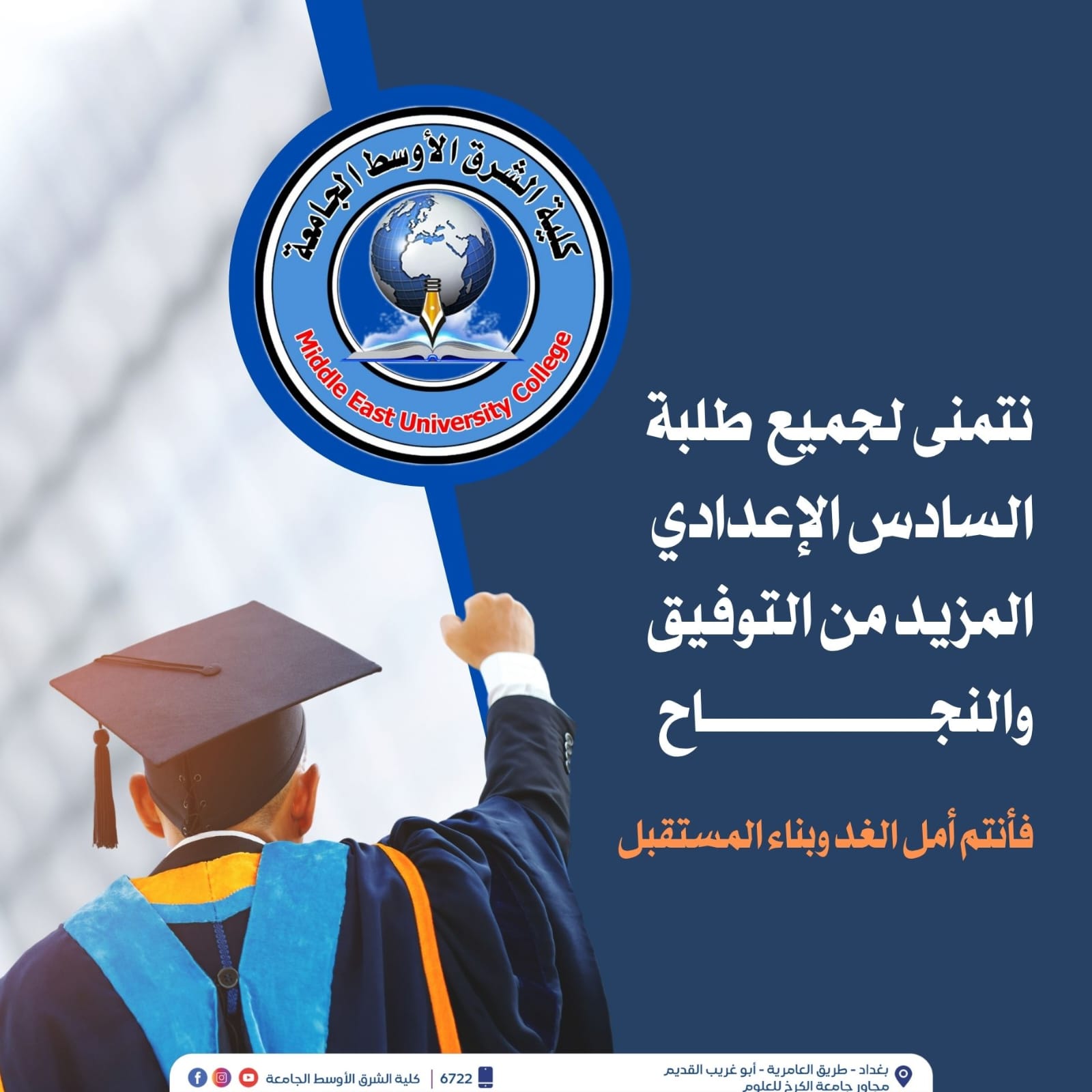كلية الشرق الأوسط الجامعة تدعو طلبة السادس الإعدادي للتركيز والجد مع انطلاق الامتحانات غدًا