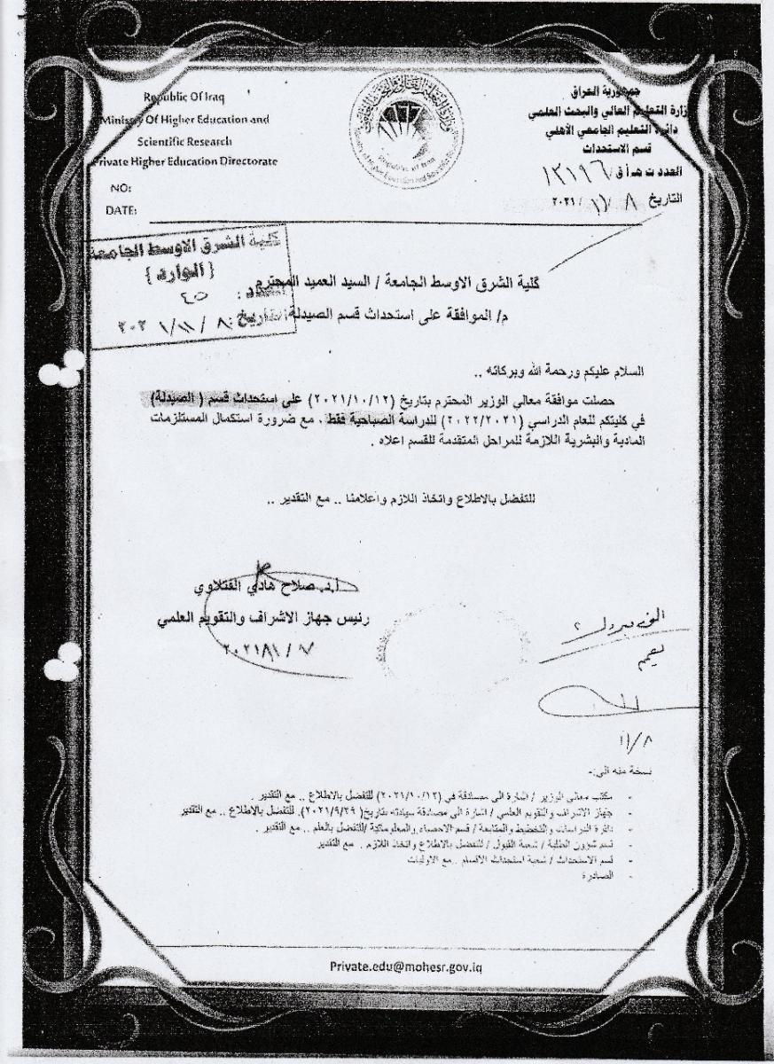 يضم قسم الصيدلة نخبة من الاساتذة الاكاديمين من