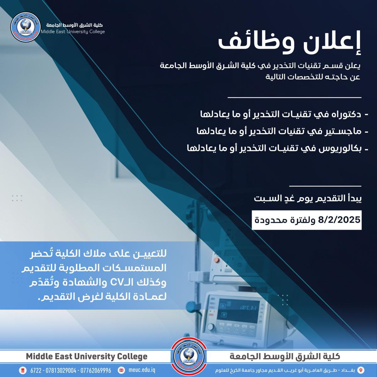 نتمنى للطالبة شهد دوام التوفيق والنجاح، ونبارك لها هذا الإنجاز الذي يُعد فخراً لكلية الشرق الأوسط الجامعة، كما نتمنى لجميع طلبتنا الأعزاء النجاح وتحقيق طموحاتهم العلمية والعملية.