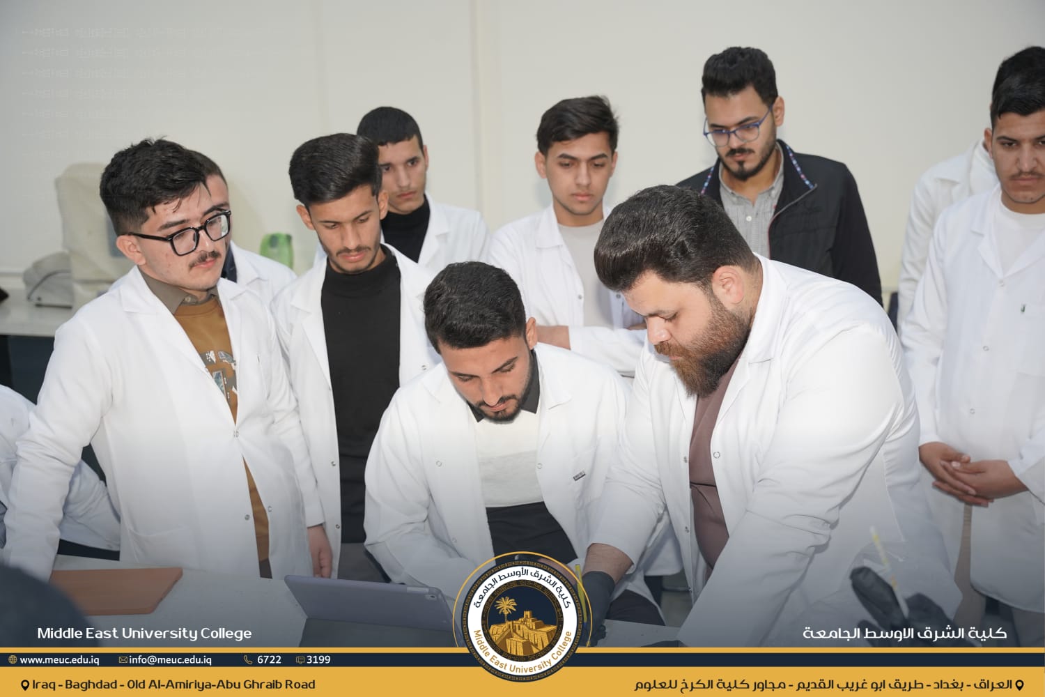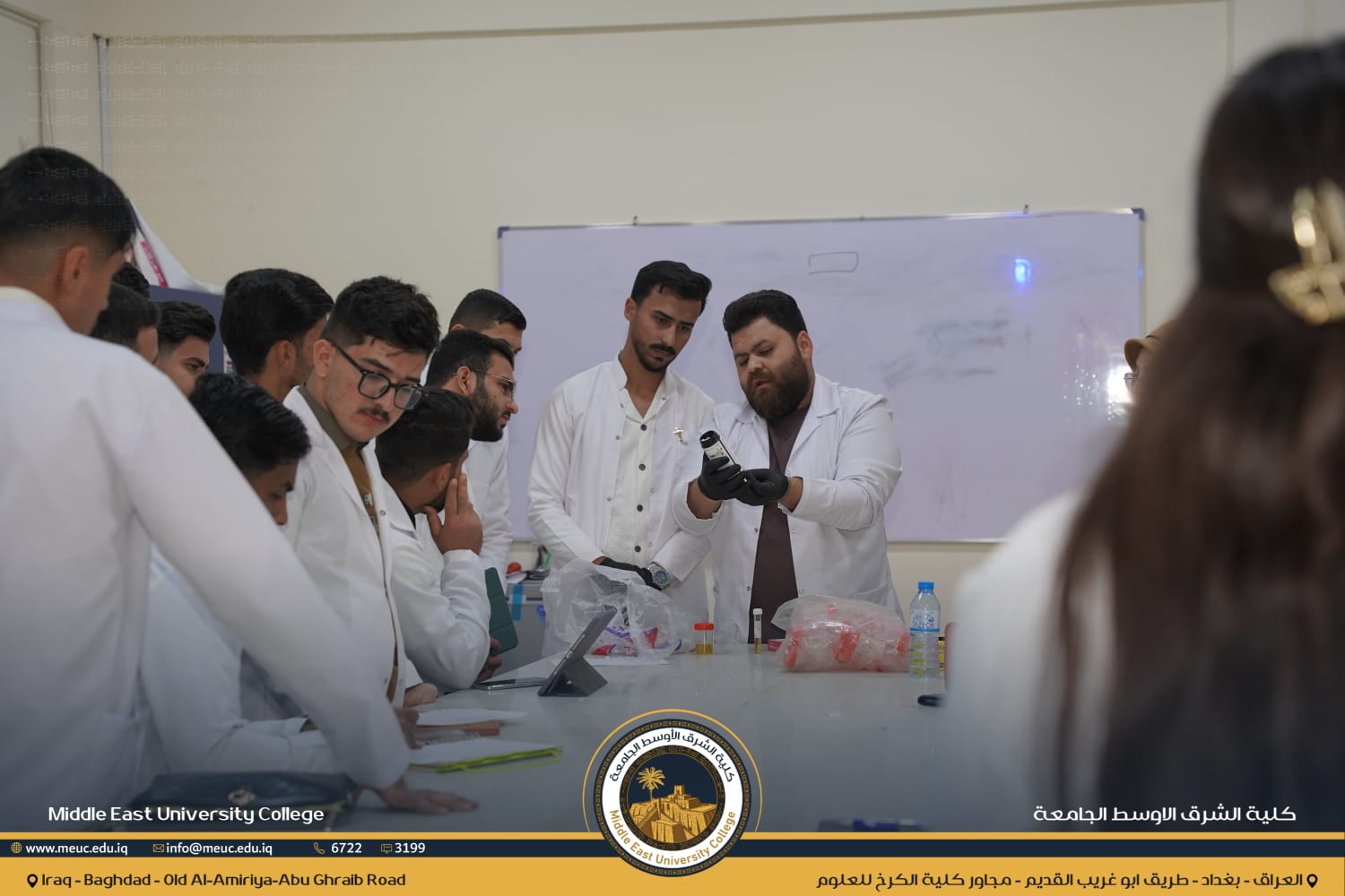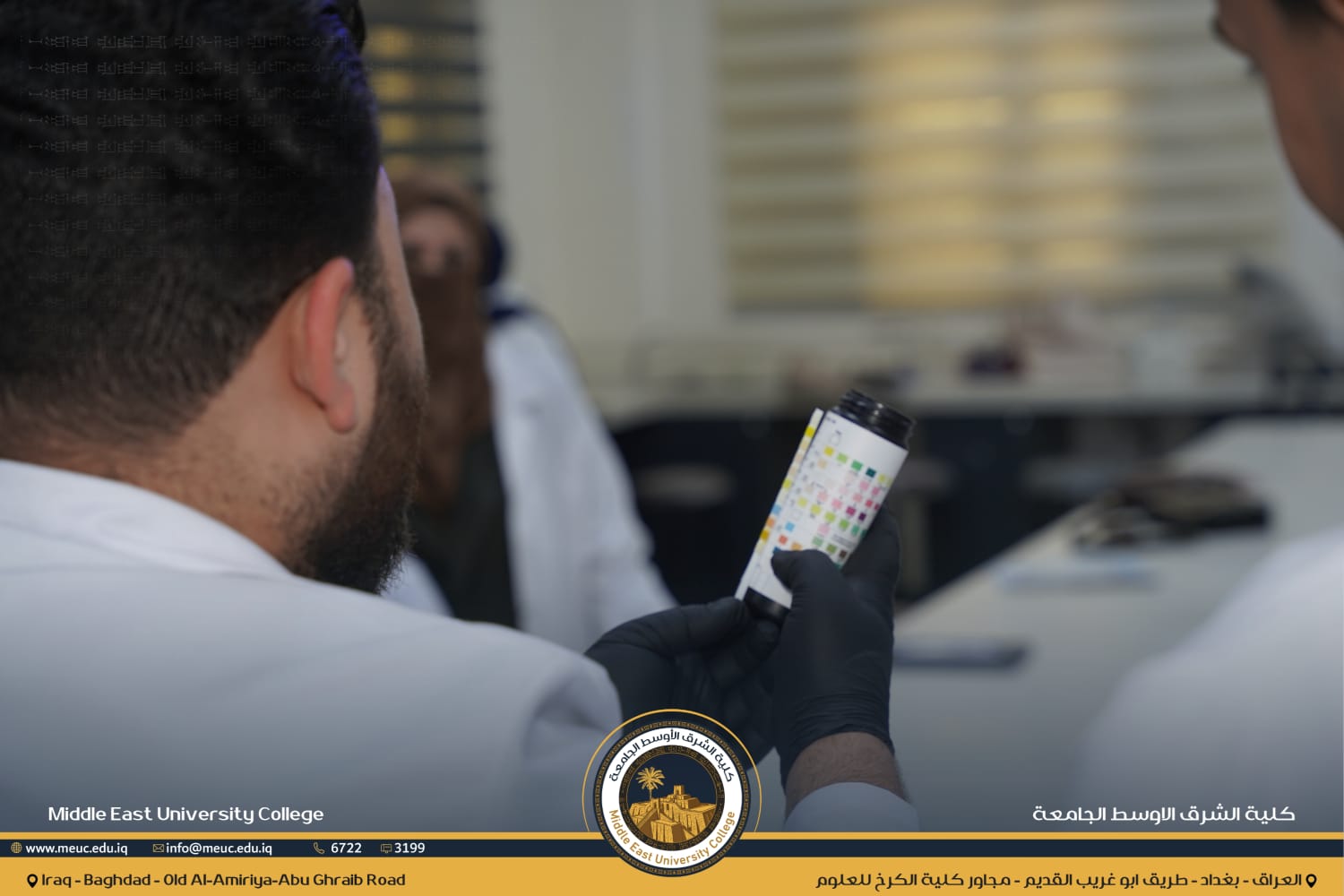نظّم قسم الصيدلة في كلية الشرق الأوسط الجامعة محاضرة عملية داخل مختبر Microbiology لطلبة المرحلة الثالثة حول تحليل الإدرار تحت إشراف الدكتور ( مصطفى جمال) . وتعرّف الطلبة على طرق الفحص ومكوّنات الإدرار الطبيعية وغير الطبيعية، مع تدريب عملي على إجراء التحاليل وقراءة النتائج وإعطائها بالشكل الصحيح وفق المعايير العلمية.