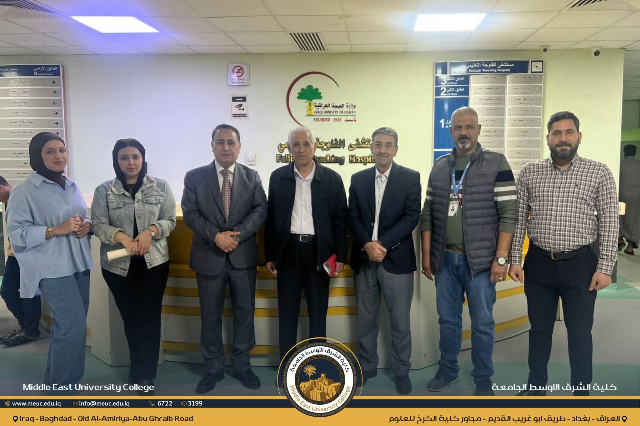 وكان في استقبال الوفد مدير عام مستشفى الفلوجة التعليمي الدكتور( إياد حسين الندا المحمدي) ، حيث اطّلع الطلبة خلال الزيارة على آلية عمل عدد من الأجهزة الطبية المتقدمة، من بينها أجهزة الأشعة، والمفراس الحلزوني (CT-Scan)، وجهاز الرنين المغناطيسي (MRI)، والتعرّف على الجوانب العلمية والعملية الخاصة باستخدامها داخل المستشفى.