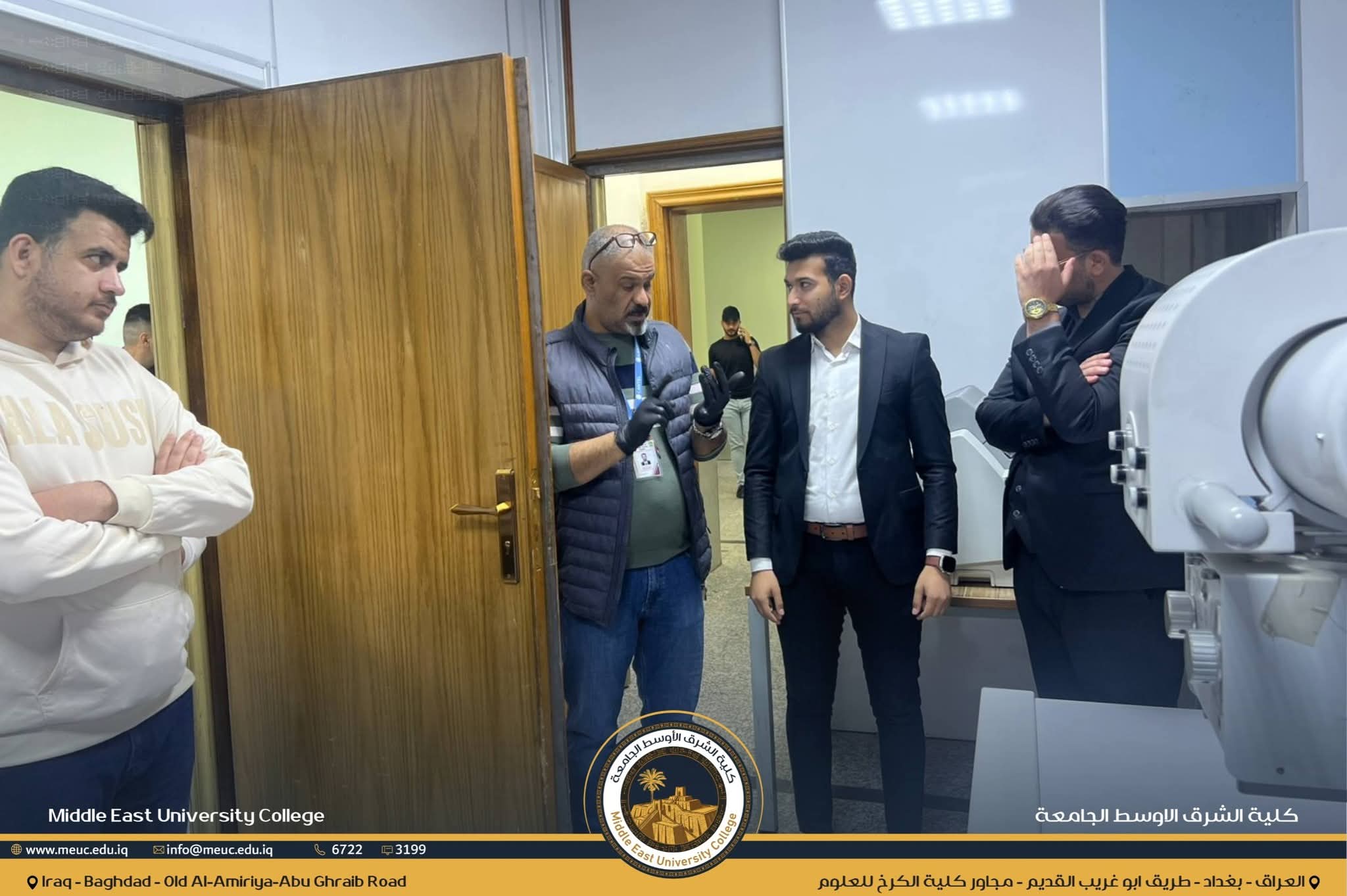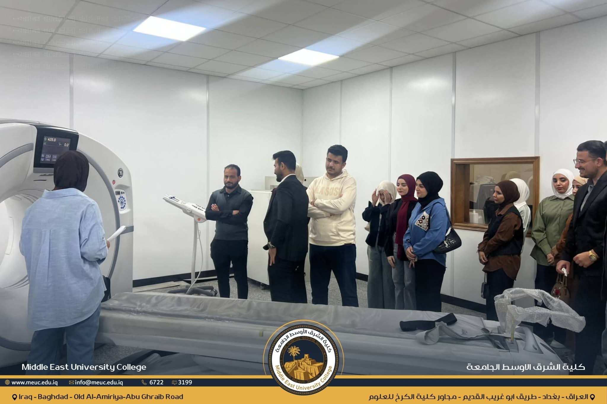 نظّم قسم هندسة تقنيات الأجهزة الطبية في كلية الشرق الأوسط الجامعة زيارة علمية لطلبة القسم إلى مستشفى الفلوجة التعليمي، بهدف الاطلاع ميدانياً على عدد من الأجهزة التشخيصية المهمة التي تُعد ضمن مفردات الامتحان المشترك، وذلك بجهود عمادة الكلية وحرصها على تعزيز الجانب التطبيقي لدى الطلبة.