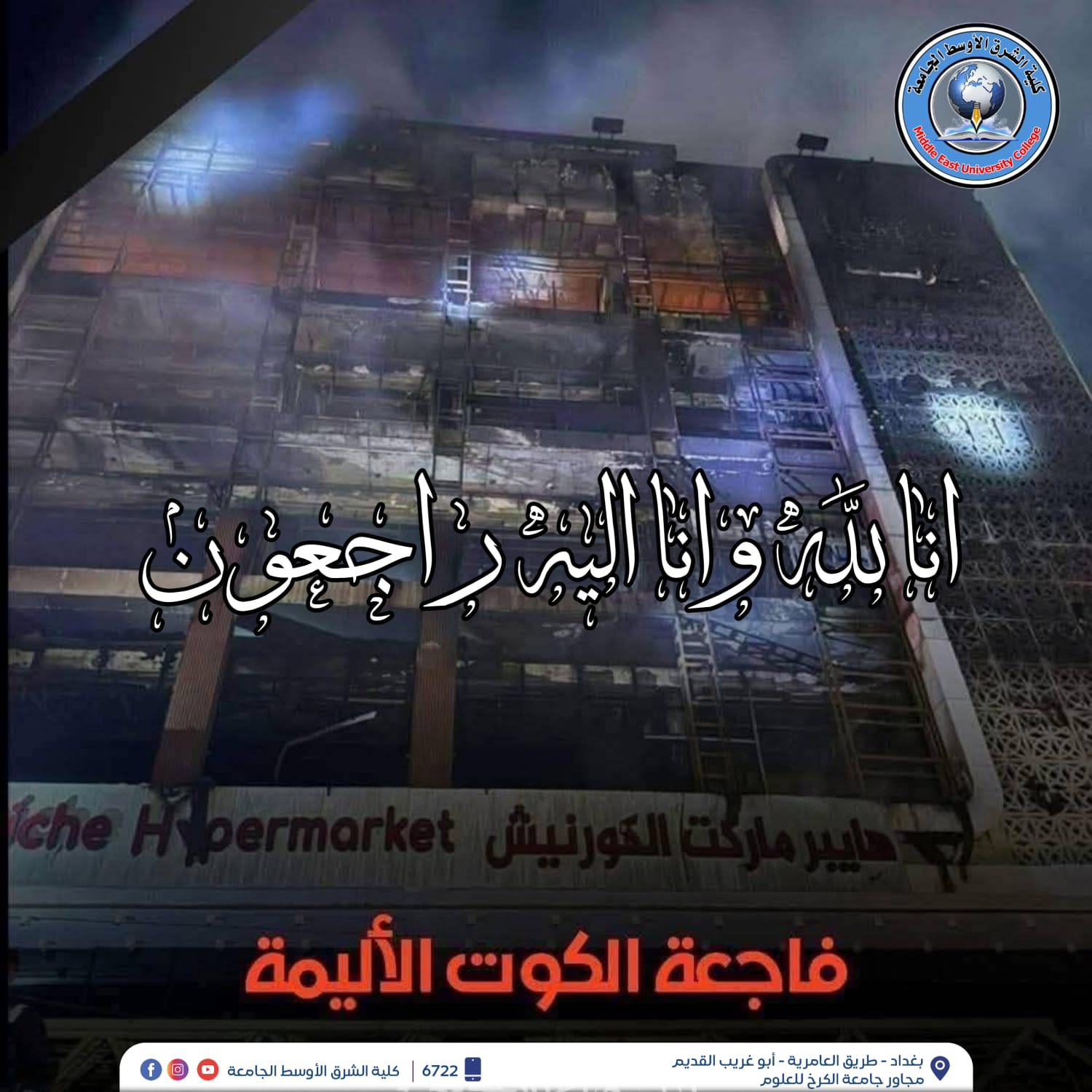 كلية الشرق الأوسط الجامعة تنعى ضحايا حريق هايبر ماركت الكوت