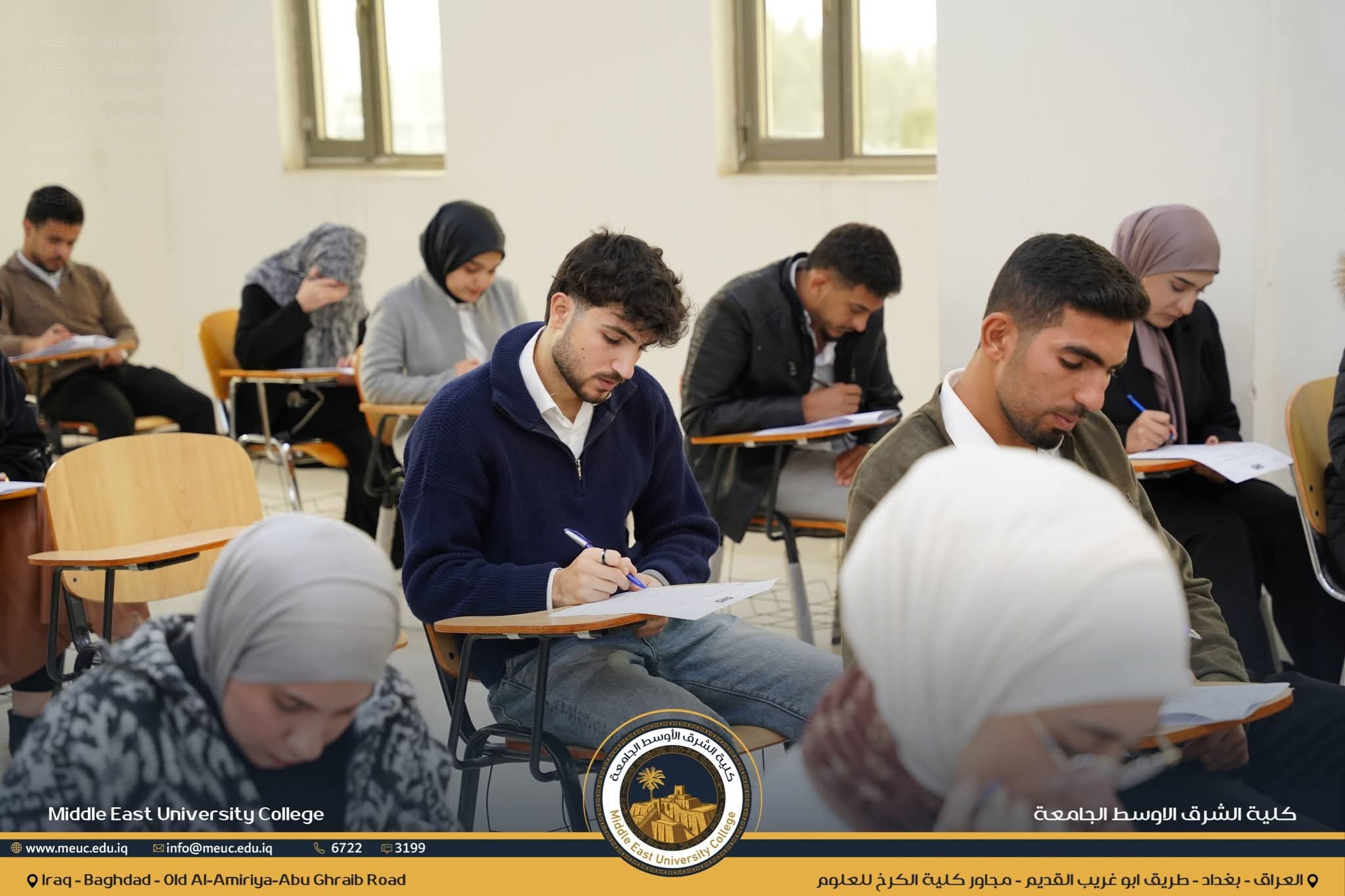 تتواصل امتحانات الفصل الدراسي الأول لطلبة كلية الشرق الأوسط الجامعة في جميع الأقسام العلمية والإنسانية والهندسية، وسط أجواء تنظيمية وانضباطية عالية، وبإشراف مباشر من قبل عمادة الكلية، في يومها الأول، بما يعكس حرص الكلية على توفير بيئة امتحانية مناسبة للطلبة.